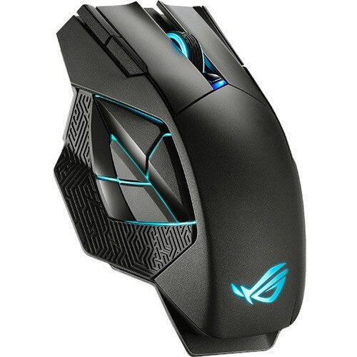Wireless gaming mouse with dual-mode connectivity (wired / 2.4 GHz) with magnetic charging stand, 12 programmable buttons, specially tuned ROG 19,000 dpi sensor, Exclusive Push-Fit Switch Sockets, ROG Micro Switches, ROG Paracord and Aura Sync RGB lighting